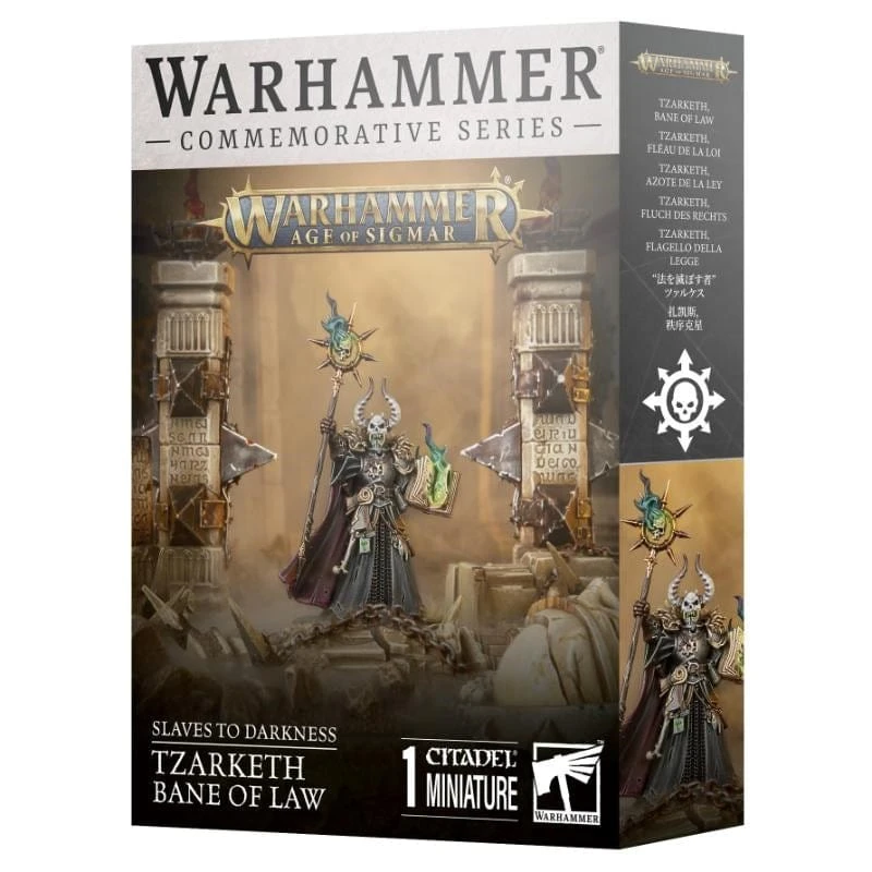 This Commemorative Series miniature kit allows you to build a Tzarketh Bane Of Law, kit contains 7 plastic components and 1 x Citadel 40mm Round Base.Â