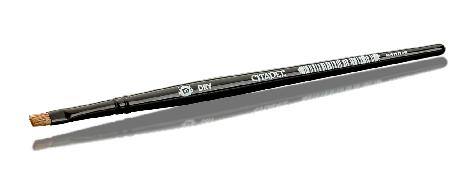 This small brush (S Dry) features a light ox hair and synthetic blend of bristles for stiffness and durability. The flat profile means a consistent coverage on raised areas – ideal for drybrushing!