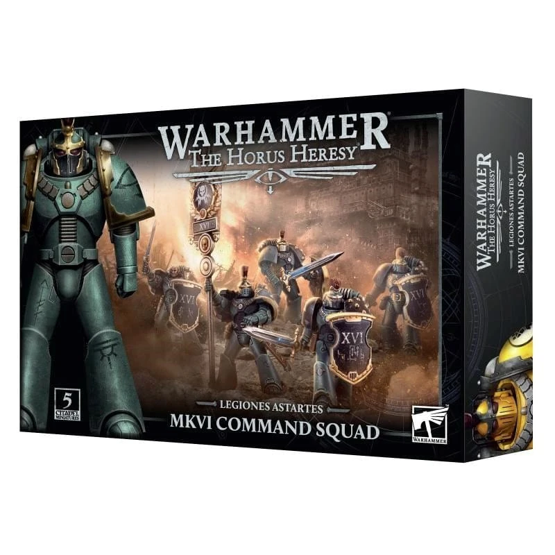 This multipart plastic kit builds a Legion Command Squad of five Chosen warriors. This set comprises 168 plastic components, and is supplied with 5 x Citadel 32mm Round Bases and 1 x Legion Command Transfer Sheet.Â