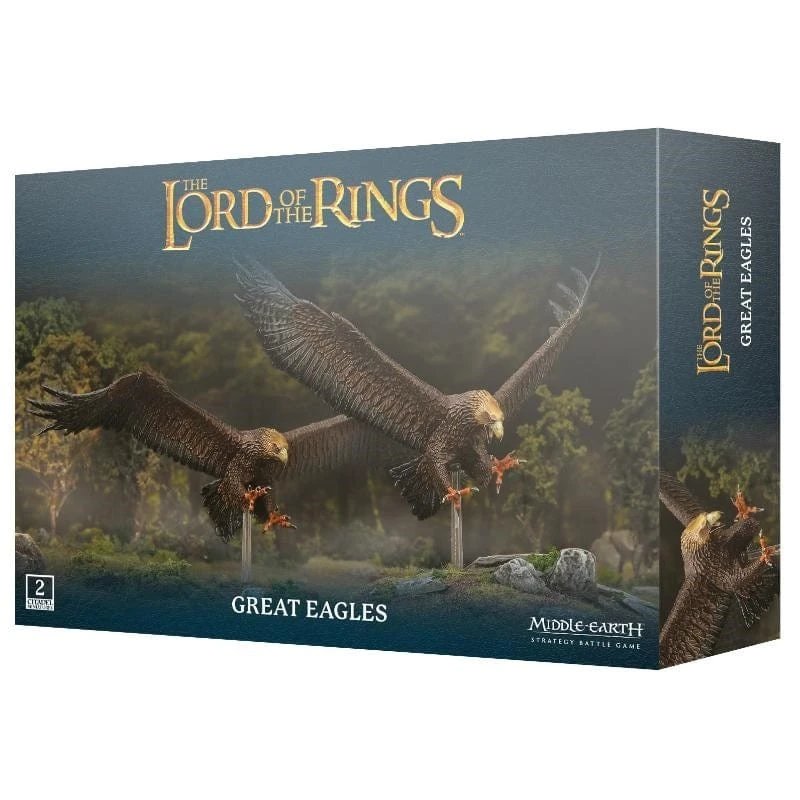 This multipart plastic kit builds two Great Eagles, kit contains 16 plastic components, 2 x Citadel 60mm Round Bases, 2 x Citadel Small Flying Bases, and 4 x Citadel Ball Socket Stems.