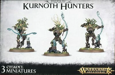 This multi-part plastic kit contains all the components necessary to assemble three Kurnoth Hunters, armed with a choice of greatswords, scythes or greatbows. One model can be assembled as a huntmaster, with a special head crest and weapon, and the kit contains seven additional spites. Supplied with three Citadel 50mm Round bases.