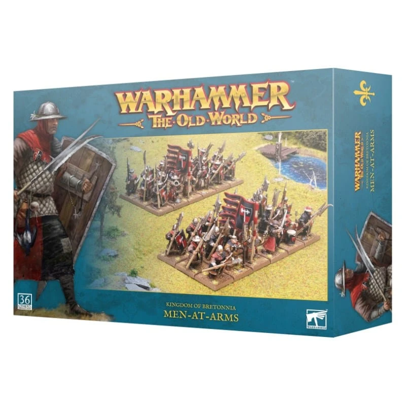 This multipart plastic kit builds 36 Men-at-Arms, kit contains 308 plastic components, 36x Citadel 25mm Square Bases, and a Bretonnian Transfer Sheet containing 176 high-quality waterslide transfers.